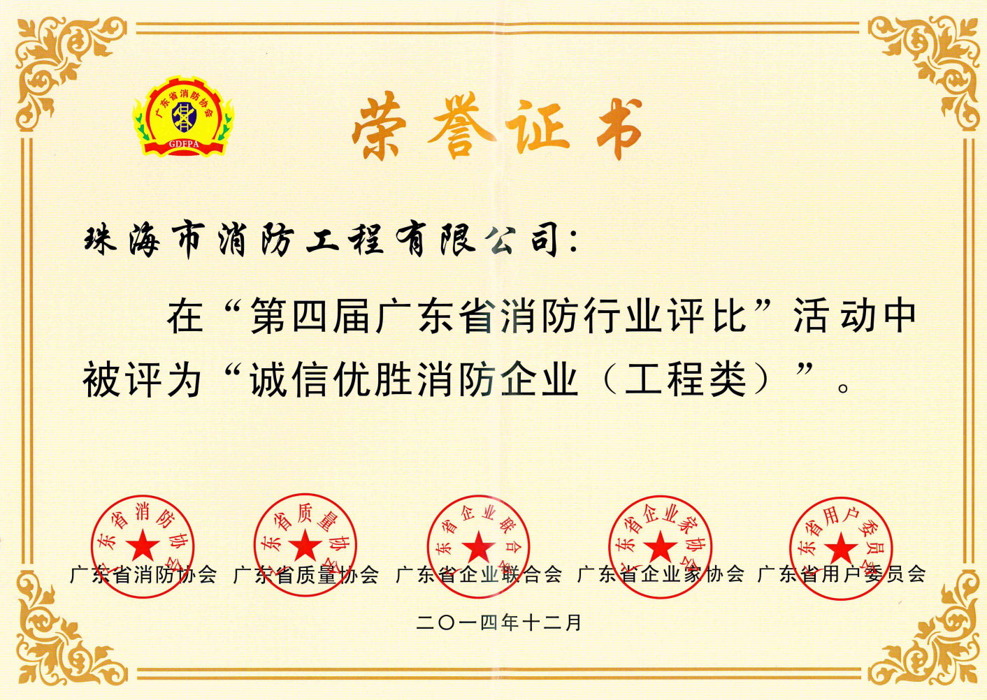 誠信優(yōu)勝消防企業(yè)(工程類)